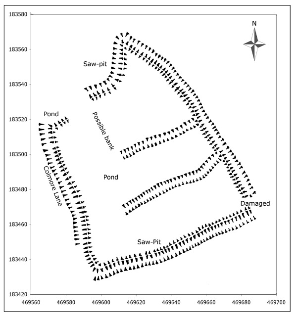 | This has been identified as being a medieval enclosure and if this is confirmed it will be a rare example of one that has not been disturbed and hence potentially important. There is some debate as to the age and suggestions range from Saxon to 13th/ 14th century. SOAG has been asked by the county archaeologist, the Forestry Commission archaeologist, to excavate a small section of one of the ditches in the hope that we will find dating evidence to define the enclosure’s age. So it is proposed we open a 2m x 2m test pit across a ditch near to where the bank and ditch has been damaged by logging work some decades ago. |